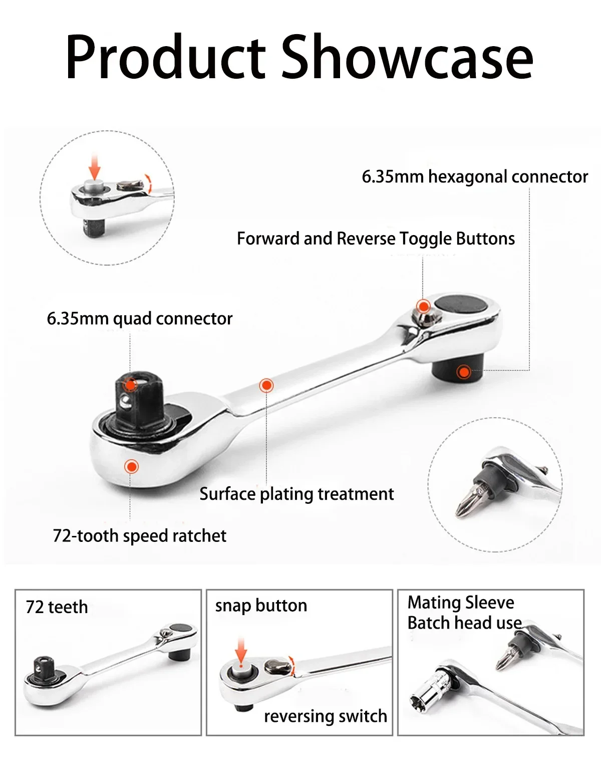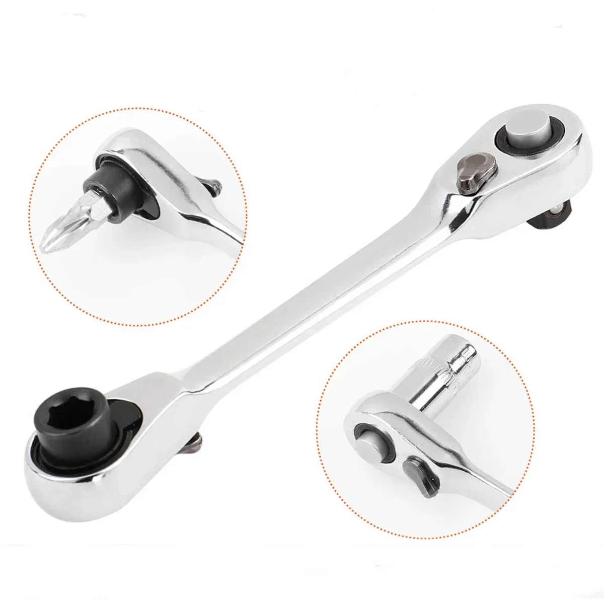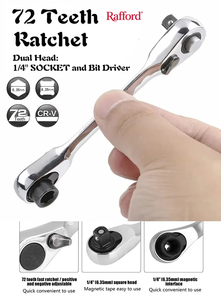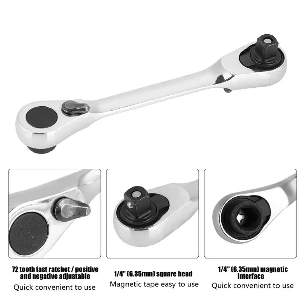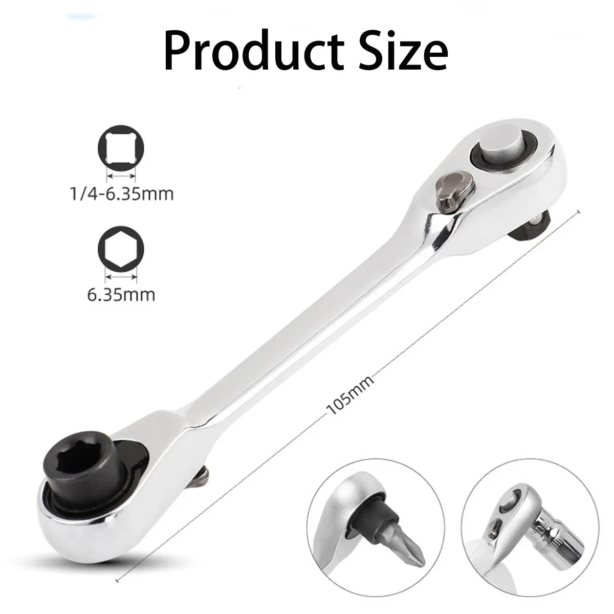 Mini Treble 1/4 Ratchet Wrench Double Ended Quick Socket Ratchet Wrench Screwdriver Hex Torque Wrenches Set 2In1 Spanner